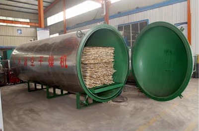 真空狀態(tài),主要利用真空狀態(tài)下水的沸點(diǎn)較低,蒸發(fā)速度加快,木材表面的含水率梯度增大,木材在干燥過(guò)程中,一方面表面水分向周圍空氣中蒸發(fā),另一方面內(nèi)部的水分不斷地向表面移動(dòng),所以在較低的溫度下加快了干燥速度,這樣就能保證木材的干燥質(zhì)量。而真空狀態(tài)是一種負(fù)壓狀態(tài),有一定吸水作用,與高頻的壓力梯度正好相似,也加速了木材芯部水分排出,此外,在低壓條件下,干燥介質(zhì)中的氧氣,因熱作用與氧化作用引起的物料變色少,基本上可以保持名貴木材的天然色澤。